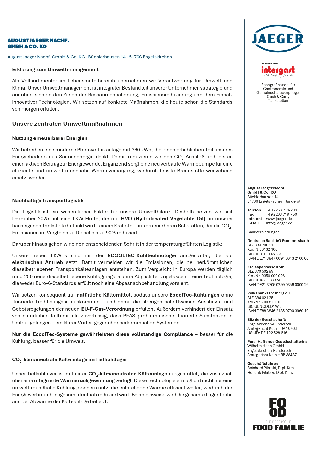 Wir sind ein modernes kundenorientiertes Familienunternehmen, welches sich seit mehr als 180 Jahren voll und ganz den Bedürfnissen unserer Kunden verpflichtet fühlt. Als Jaeger FoodService liefern wir Lebensmittel und Non-Food Produkte an Großverbraucher, Gemeinschafts-verpfleger sowie Hotellerie und Gastronomie in NRW und Teile von Nordhessen und Rheinland-Pfalz.